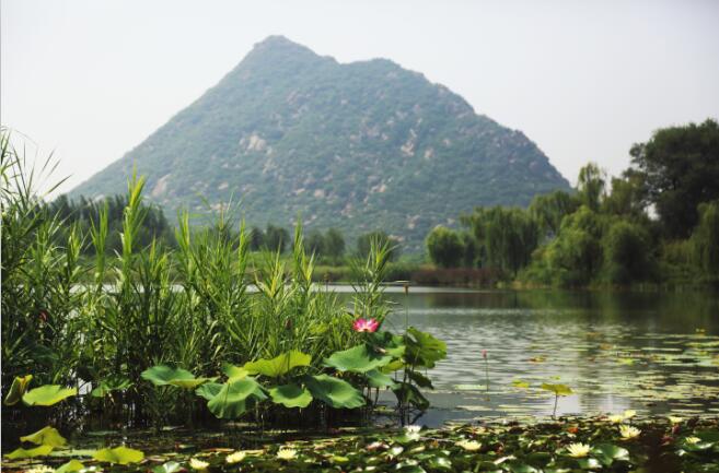 濟(jì)南華山又名華不(fū)注山,其名取自于《詩(shī)經(jīng)·小雅·常棣》,其詩(shī)曰:“常(棠)棣之華,鄂不??”。“華”即“花”,“鄂不”即“萼跗”,謂之花蒂。山名“華不注”,意為此山如花跗注于水中。經(jīng)過(guò)緊張的恢復(fù)整治,目前,“華不注”的山水勝景初現(xiàn),“水中起芙蓉”的旖旎景觀又一次展現(xiàn)在世人面前。