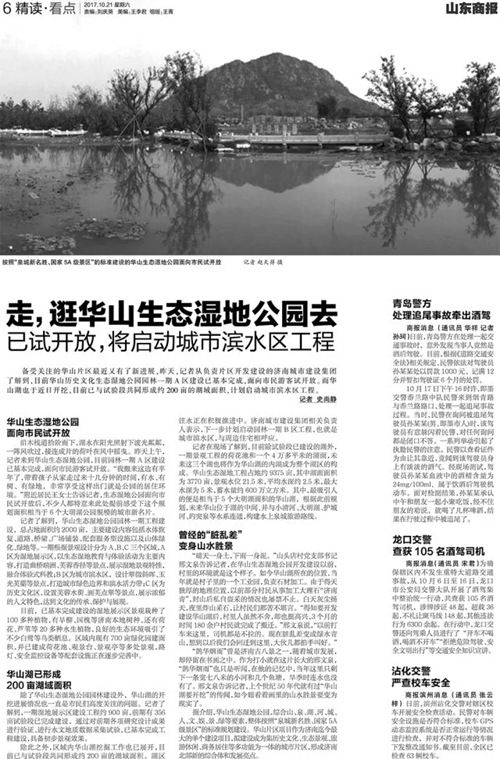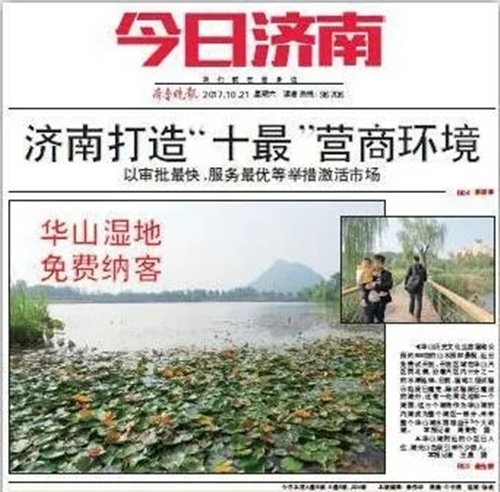 濟(jì)南電視臺《都市新女報》:華山湖全部完成后,面積相當(dāng)于五個大明湖。