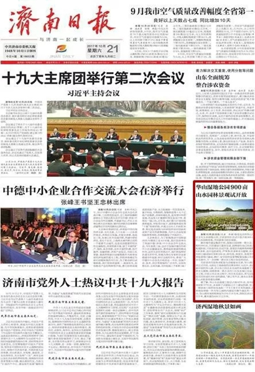 濟(jì)南日報:景觀區(qū)內(nèi)栽種各種植物100多種,荷花池、觀景臺、景觀亭等多處景觀已建成。