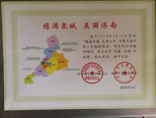 3月10日上午,團省委、團市委聯(lián)合愛濟南為助力濟南新舊動能轉(zhuǎn)換先行區(qū)綠色生態(tài)建設(shè),開展2018年“綠滿齊魯,美麗山東”暨濟南市青少年植樹活動。本次活動植樹場地位于濟陽縣崔寨鎮(zhèn)邢家渡干渠前街段,方圓約2公里。資產(chǎn)運營公司積極動員,組織公司青年團員參與本次活動。