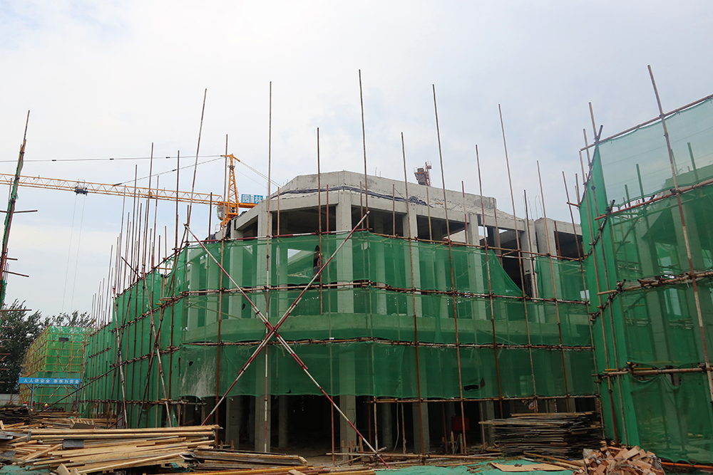 項目所有建筑中,最具標志性的當屬城門樓,同時,這也是項目內(nèi)工程量最大、工期最長的單體建筑。據(jù)現(xiàn)場負責人介紹,僅城門樓施工使用的鋼管就已達20萬米,占整個項目鋼管消耗量的近一半,從基礎施工到主體完工,需要耗時近4個月。