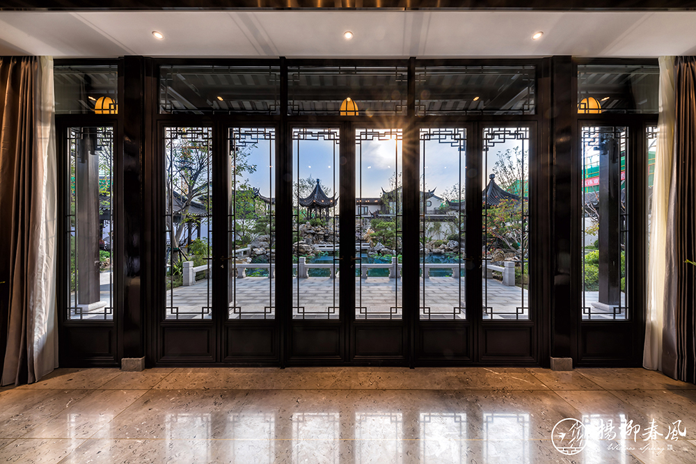 此次對(duì)外開放的樣板房一種為新亞洲風(fēng)格,以“禮”、“樂”為創(chuàng)作靈感,巧妙借用了中式園林框景的手法來演繹時(shí)尚的氣質(zhì),將室外園林造景與室內(nèi)裝飾相結(jié)合,是古典與現(xiàn)代的一次碰撞。在空間布局上,多處采用中軸對(duì)稱的傳統(tǒng)中式手法,大氣之中也展現(xiàn)著家族禮序。南北雙庭院、連接私享露臺(tái)的主臥套房、挑空設(shè)計(jì)的大面積地下空間,處處彰顯著大家風(fēng)范,在古樸的韻味中體現(xiàn)出一份現(xiàn)代的質(zhì)感。