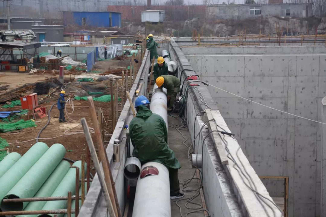 AAO反應(yīng)池是污水處理最重要的環(huán)節(jié),主要由厭氧池、缺氧池、好氧池等組成,優(yōu)化污水處理的工藝,是一種反應(yīng)器少、步驟少、效率高的污水處理生化反應(yīng)池系統(tǒng),同時利用內(nèi)循環(huán)反硝化技術(shù)對城市污水進行脫氮除磷處理,可減少后續(xù)沉淀池藥劑使用。截止目前,已完成主體結(jié)構(gòu)施工,正在進行反應(yīng)池的管道焊接、安裝工作。