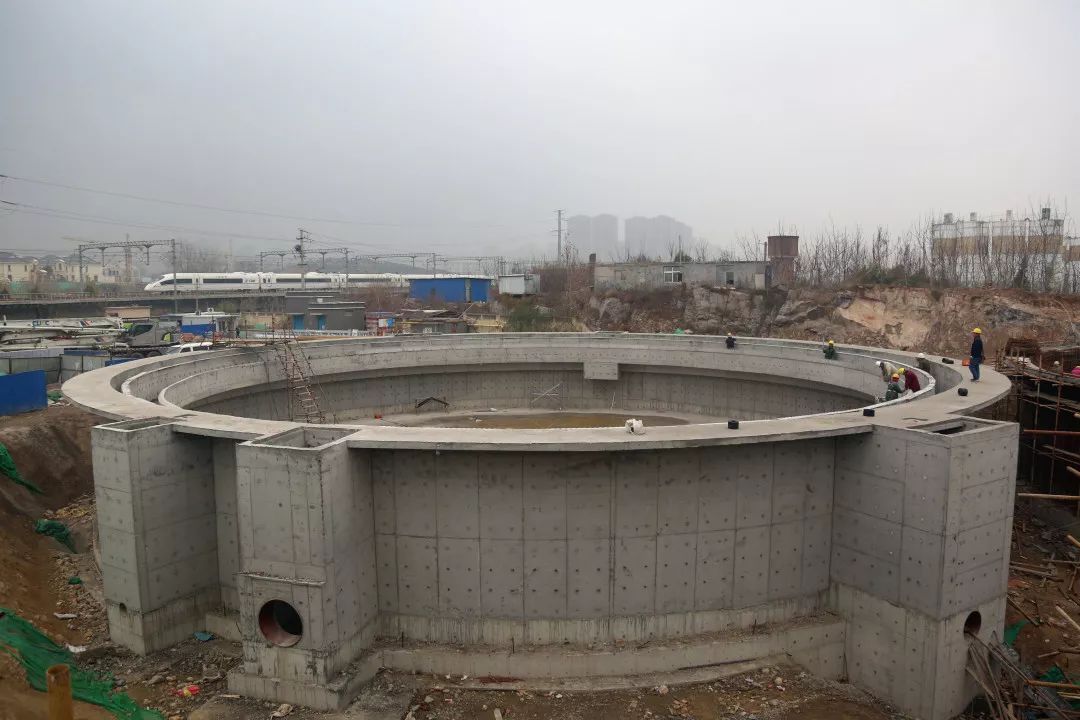 高效沉淀池及轉(zhuǎn)盤濾池是項目建設(shè)最為復(fù)雜的通水單體,包含東側(cè)二沉池、西側(cè)二沉池及高效沉淀池。沉淀池內(nèi)污水能有效沉淀水中的泥沙以及污泥等污染物,其中高效沉淀池采用多級沉淀以及離心作用,從而提高了沉淀以及分離效率,提高了污水處理的效率以及污水處理質(zhì)量。截至目前,東側(cè)二沉池的主體結(jié)構(gòu)已全部完成;西側(cè)二沉池已完成結(jié)構(gòu)施工,正在進行剩余結(jié)構(gòu)混凝土澆筑工作;高效沉淀池正進行模板加固工作,現(xiàn)場按12月15日主體結(jié)構(gòu)完成節(jié)點推進施工。