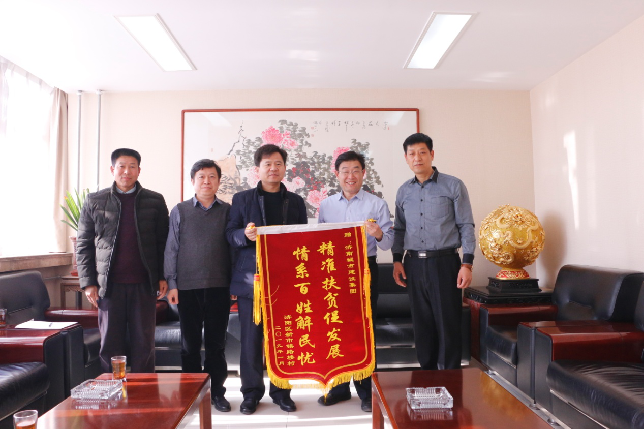 1月25日,濟陽區(qū)新市鎮(zhèn)黨委副書記王勇、鎮(zhèn)扶貧辦主任劉俊青、路樓村支部書記路和勇、路樓村“第一書記”張慶紅一行到濟南城市建設(shè)集團就幫扶工作進行回訪,并為集團送來錦旗,集團副總經(jīng)理安玉坤、集團辦公室副主任徐峰參加活動。
