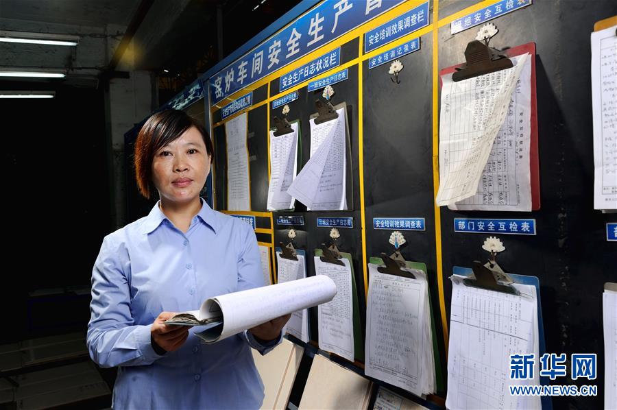 首批農(nóng)民工全國(guó)人大代表之一胡小燕在曾經(jīng)工作過(guò)的陶瓷廠(chǎng)檢查職工權(quán)益保護(hù)工作(2013年11月5日攝)。新華社記者劉大偉攝