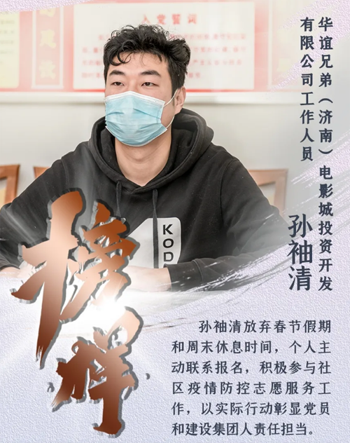 新型冠狀病毒肺炎疫情發(fā)生以來,濟(jì)南城市建設(shè)集團(tuán)認(rèn)真貫徹落實(shí)中央、省、市關(guān)于疫情防控和復(fù)工復(fù)產(chǎn)的決策部署,上下一心、眾志成城,全體干部職工恪盡職守、扎根一線,全員全力投入到疫情防控阻擊戰(zhàn)中。期間,涌現(xiàn)出了眾多先進(jìn)典型和感人故事,用實(shí)際行動(dòng)詮釋了建設(shè)集團(tuán)人的精神風(fēng)貌和責(zé)任擔(dān)當(dāng)。我們?cè)诩瘓F(tuán)宣傳平臺(tái)《榜樣》欄目,推出系列人物報(bào)道,挖掘宣傳一線典型,提振士氣、凝聚力量,激勵(lì)我們繼續(xù)前行,堅(jiān)決打贏疫情防控的人民戰(zhàn)爭、總體戰(zhàn)、阻擊戰(zhàn)。