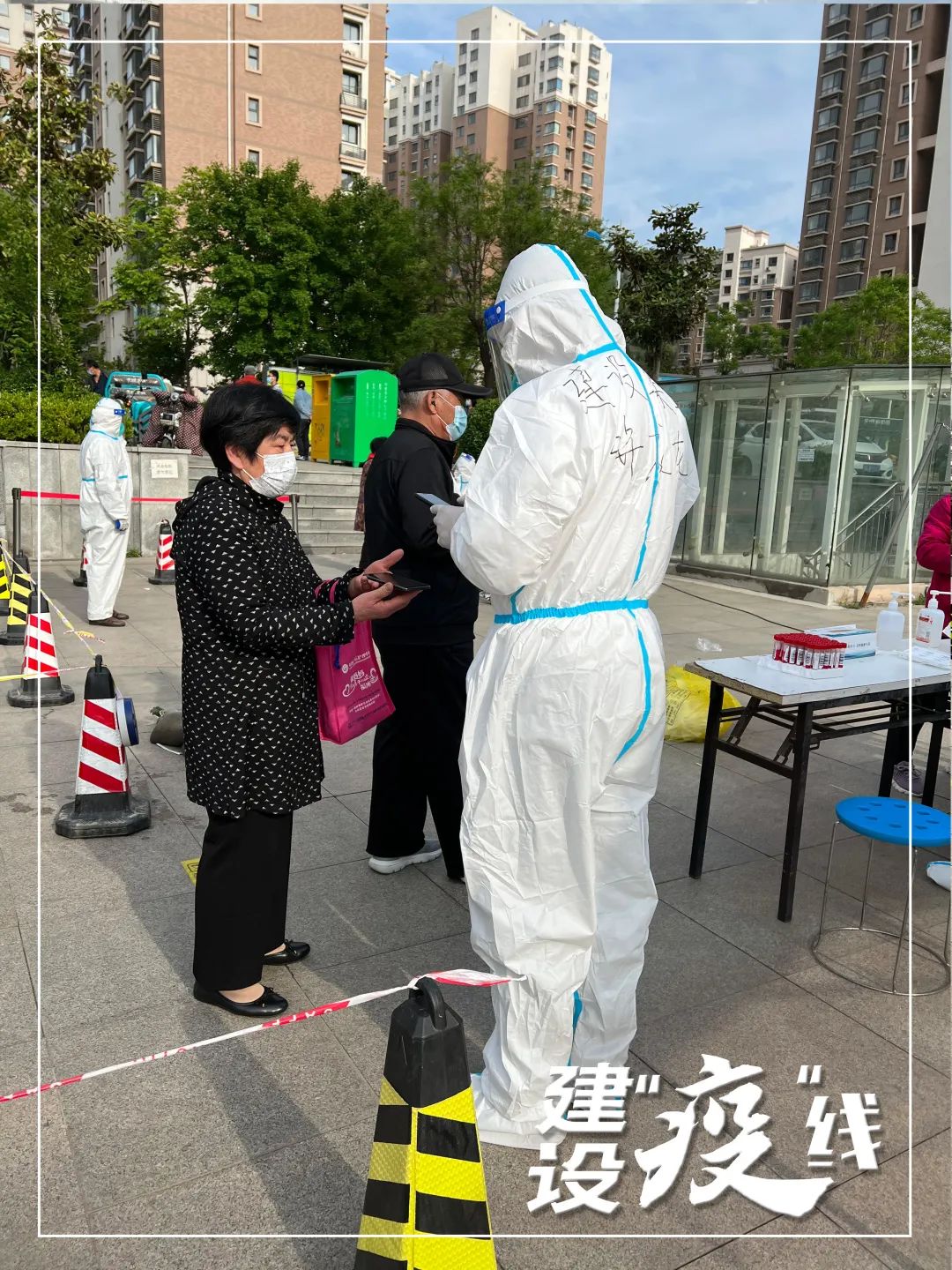 此次許成龍和他的同事被分配到高新區(qū)舜華街道開展工作,主要協(xié)助社區(qū)工作人員做好社區(qū)人員“兩查一測”、核酸檢測、居民生活保障等工作。“可以說是從外圍進入了內(nèi)部,我們一般是早上8:00到崗,上午主要是值守和給社區(qū)居民提供生活保障,工作內(nèi)容更瑣碎,同時也要求我們更細致,不能有絲毫的含糊”,許成龍說:“下午3:00到晚上10:00是工作的高峰期,是最忙碌的時候也是壓力最大的時候。”