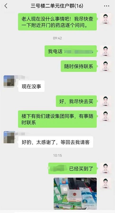 孫景鑫得知情況后,徒步對小區(qū)附近內(nèi)藥店進行詢問,均沒有這種藥品,又經(jīng)多方聯(lián)系,開車延稼軒路向南一直到工業(yè)北路向濟鋼方向一路尋找,終于尋到此藥品,自費購買了一個月正常使用量的“心痛寧滴丸”,并為獨居老人捎帶部分防疫和消暑物資。隨后,他又投身于戰(zhàn)“疫”工作中,并在住戶微信群里說道:“樓下有我們建設(shè)集團的同事,有事隨時聯(lián)系我們。”