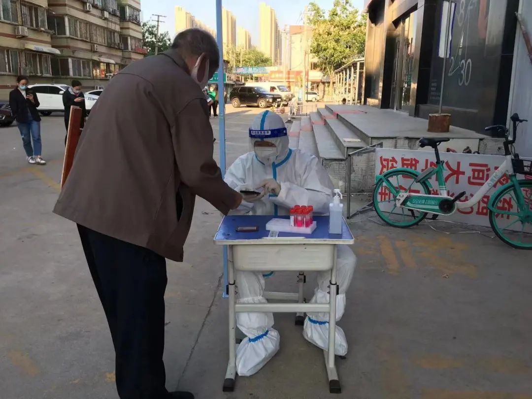 他們下沉的聯(lián)四社區(qū)居民約8000余人,同樣是老年人居多,手機掃碼操作相對困難,為提高核酸檢測效率,城建集團李楠用自己的手機幫助耐心細致地幫老年人進行信息錄入。