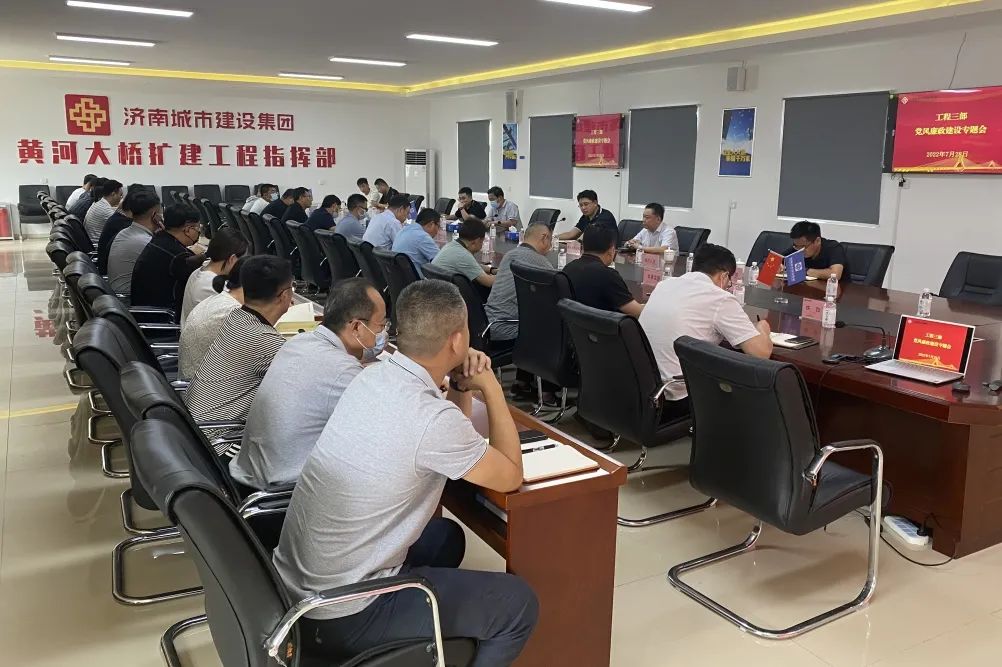 為全面貫徹集團(tuán)黨委關(guān)于加強(qiáng)新時(shí)代廉潔文化建設(shè)的會(huì)議精神,加強(qiáng)支部黨風(fēng)廉政建設(shè)工作,把全面從嚴(yán)治黨要求落到實(shí)處,7月28日,集團(tuán)工程三部黨支部召開(kāi)2022年黨風(fēng)廉政建設(shè)專(zhuān)題會(huì)議。