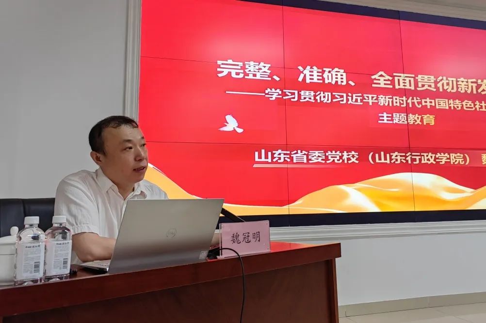 活動邀請省委黨校中共黨史教研部副教授、山東省習(xí)近平新時(shí)代中國特色社會主義思想研究中心研究員魏冠明進(jìn)行專題授課,魏冠明以“完整、準(zhǔn)確、全面貫徹新發(fā)展理念--學(xué)習(xí)貫徹習(xí)近平新時(shí)代中國特色社會主義思想主題教育”為主題,全面解讀了新發(fā)展理念的內(nèi)涵要義、政策啟示和重大意義,推動黨員干部進(jìn)一步學(xué)懂弄通做實(shí)習(xí)近平新時(shí)代中國特色社會主義思想。