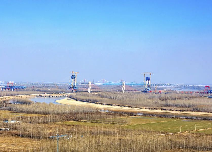 黃河流域濟(jì)南段,濟(jì)南黃河公路大橋東側(cè),黃河上第一座不等跨并橋建設(shè)工程,同時(shí)也是黃河上跨徑最大、鋼橋總長(zhǎng)最長(zhǎng)的公軌分層合建橋梁,濟(jì)南黃河公路大橋改擴(kuò)建工程正在有序推進(jìn)工程建設(shè)。1982年建成的當(dāng)時(shí)亞洲跨徑最大的濟(jì)南黃河公路大橋,在服役41年之后,見證著又一次“歷史跨越”。