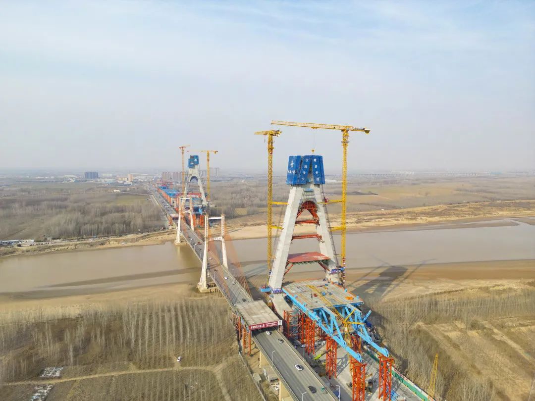 目前,濟(jì)南黃河公路大橋改擴(kuò)建工程主橋部分下部結(jié)構(gòu)施工完成,鋼桁梁架設(shè)61節(jié)間,主塔已施工至上塔柱;零點(diǎn)立交段,濟(jì)南西崗收費(fèi)站及跨將軍路南側(cè)匝道橋已拆除,正在進(jìn)行現(xiàn)澆箱梁及軌道交通土建預(yù)留圍護(hù)樁、高壓旋噴樁施工。