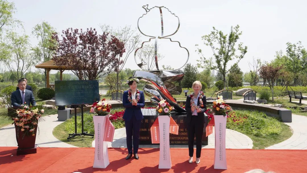 5月9日,濟(jì)南國際友城花園——芬蘭萬達(dá)友城花園在濟(jì)南舉行開園儀式。副市長楊麗與芬蘭駐華大使孟藍(lán)共同為芬蘭萬達(dá)國際友城花園開園剪彩。