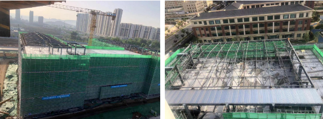 大廟屯片區(qū)地塊 X-8 初中項目是濟南市市中區(qū)教育和體育局為緩解片區(qū)就學壓力,優(yōu)化學生辦學條件規(guī)劃的重點民生項目,由濟南城市建設集團負責建設,該項目位于大廟屯片區(qū),地處二環(huán)南路以北、克郎山西路以東,總用地面積58668平方米,總建筑面積 26302 平方米,為 45 班初中項目,主要有食堂及報告廳、教學綜合樓、風雨操場、配電室及器材室、主入口門衛(wèi)、次入口門衛(wèi)、非機動車棚、地下車庫八個單體,包括室外體育場、道路、綠化、室外管網(wǎng)的建設,項目裝配率高達68.42%,鋼結(jié)構(gòu)主體結(jié)構(gòu),ALC裝配墻板,頂板澆筑使用樓承板新型材料,在保證工程安全性、實用性同時有效提高了施工效率。