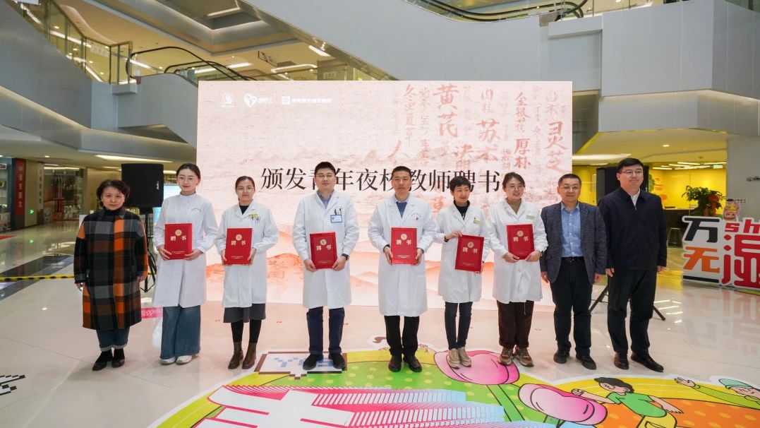活動中,與會領導啟動了“青年夜校青年名中醫(yī)系列課程”,并為青年名中醫(yī)教師代表頒發(fā)了聘書,隨后參觀了集團青年夜校教學場地及中醫(yī)市集。