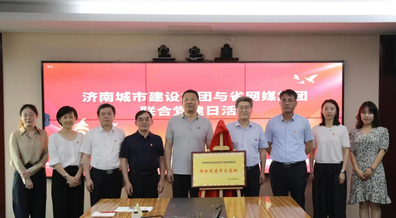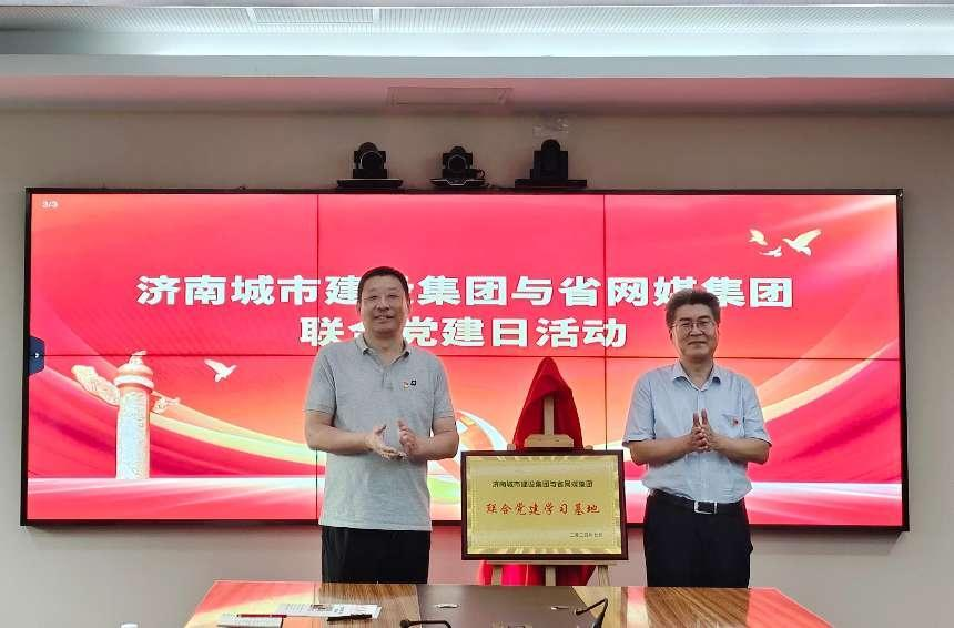 活動(dòng)中,贠瑞虎與鐘善良共同為“濟(jì)南城市建設(shè)集團(tuán)與省網(wǎng)媒集團(tuán)聯(lián)合黨建學(xué)習(xí)基地”揭牌。
