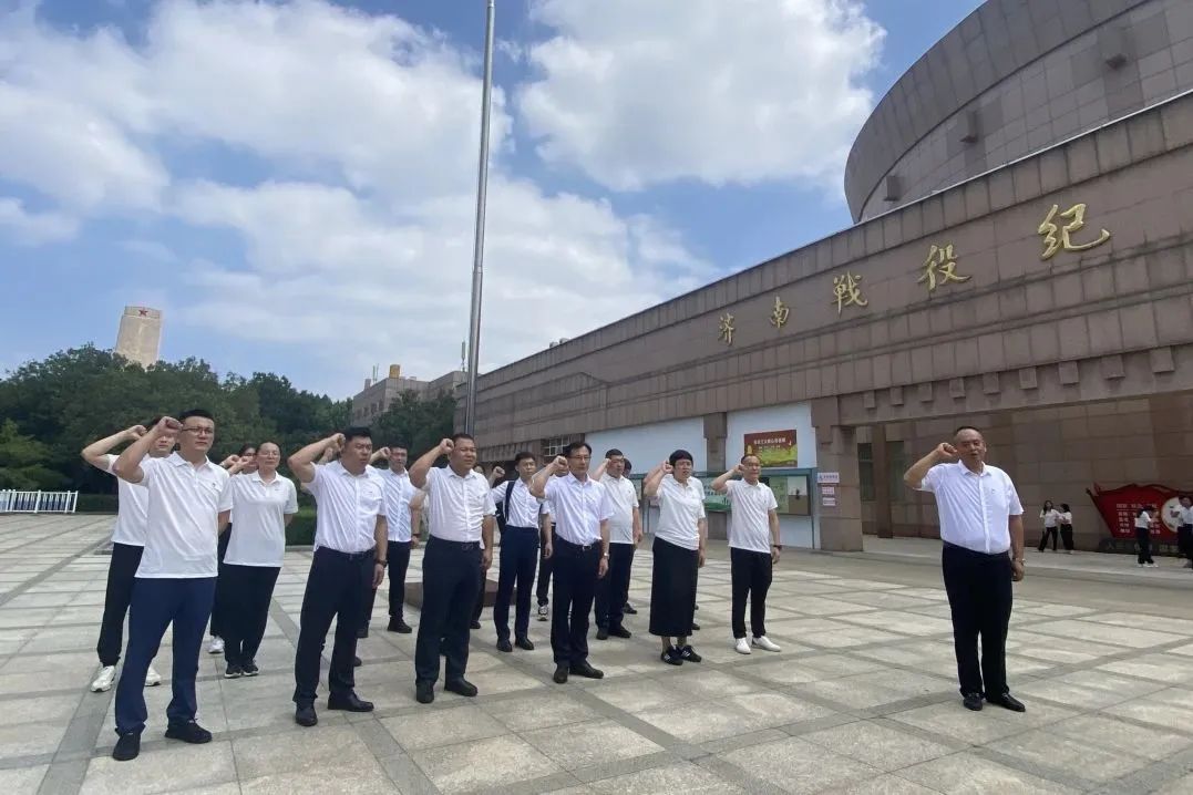 8月2日,集團(tuán)工程五部黨支部、山東貫月科創(chuàng)投資集團(tuán)公司黨支部到濟(jì)南戰(zhàn)役紀(jì)念館開展“牢記初心使命 堅(jiān)定理想信念”暨“傳承紅色文化 賡續(xù)紅色血脈”八一建軍節(jié)主題活動,進(jìn)一步深入學(xué)習(xí)貫徹習(xí)近平新時代中國特色社會主義思想,鞏固和深化黨紀(jì)學(xué)習(xí)教育成果,增強(qiáng)黨員干部的黨性修養(yǎng)與理想信念。活動中,全體黨員先后參觀了陳列展廳和全景畫展館,重溫了入黨誓詞,并表示將以更加奮發(fā)向上的精神狀態(tài)履職盡責(zé),用更加忠誠堅(jiān)定的意志肩負(fù)擔(dān)當(dāng)使命,努力為集團(tuán)高質(zhì)量轉(zhuǎn)型發(fā)展貢獻(xiàn)力量。