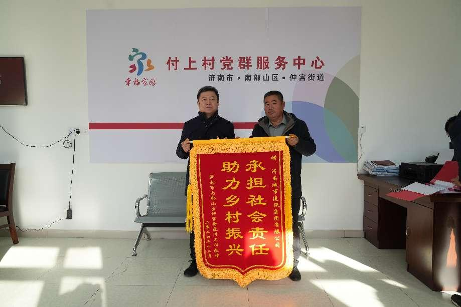 活動中,建設(shè)集團(tuán)黨群工作部與山東省市政行業(yè)協(xié)會聯(lián)合開展“黨建引領(lǐng)聚合力 村企共建促發(fā)展”主題黨日活動,聽取付上村發(fā)展現(xiàn)狀介紹,了解派駐第一書記工作開展情況,查看付上村路燈、黨群服務(wù)中心等幫扶建設(shè)成果,付上村向建設(shè)集團(tuán)和山東省市政行業(yè)協(xié)會贈送錦旗。