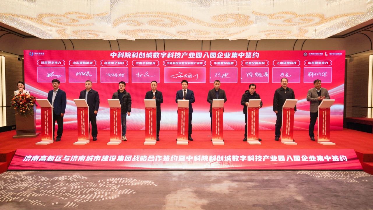 12月25日,濟(jì)南高新區(qū)與濟(jì)南城市建設(shè)集團(tuán)舉行戰(zhàn)略合作簽約暨中科院科創(chuàng)城數(shù)字科技產(chǎn)業(yè)園入園企業(yè)集中簽約活動(dòng)。濟(jì)南市副市長,高新區(qū)黨工委副書記、管委會常務(wù)副主任任廣鋒出席活動(dòng)并見證簽約。市科技局黨組書記、局長黃波,濟(jì)南高新區(qū)管委會副主任、濟(jì)高科創(chuàng)投資集團(tuán)董事長兼總經(jīng)理劉松,濟(jì)南城市建設(shè)集團(tuán)黨委副書記、總經(jīng)理?xiàng)罘?,建設(shè)集團(tuán)副總經(jīng)理徐文東參加活動(dòng)。