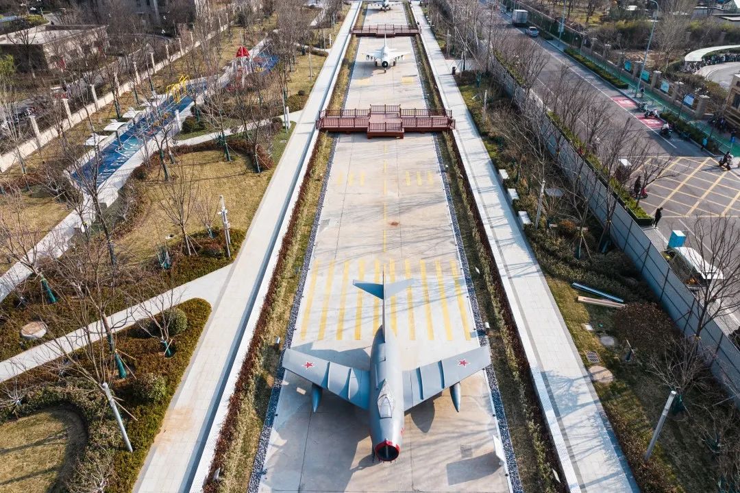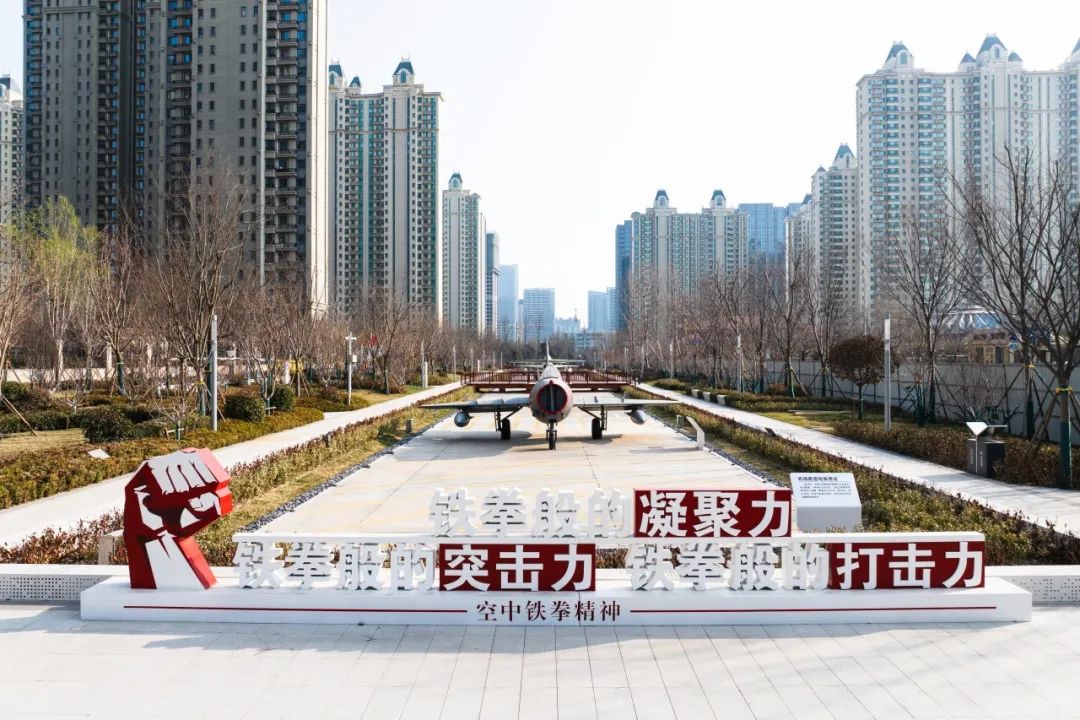 在公園南地塊紀念廣場,通過展示張莊機場原駐扎部隊6位空軍戰(zhàn)斗英雄的雕像和英雄事跡,以及“空中鐵拳精神”展示,傳承紅色基因。