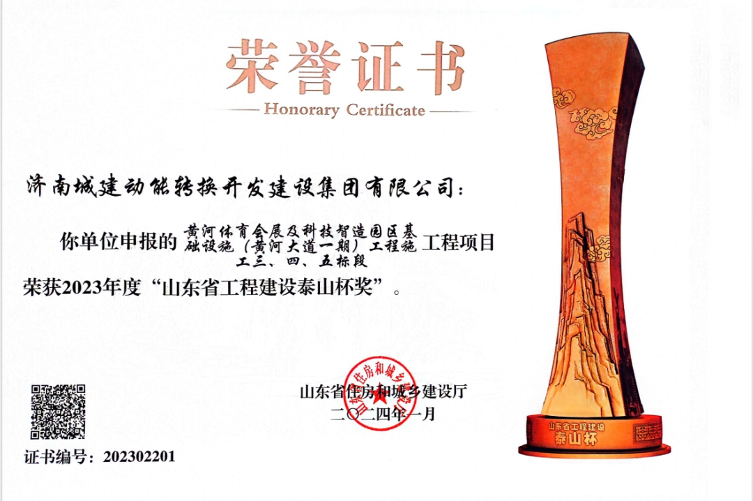 項(xiàng)目先后被評(píng)為“山東省建筑施工安全文明標(biāo)準(zhǔn)化工地”“山東省建筑工程優(yōu)質(zhì)結(jié)構(gòu)”“全國(guó)質(zhì)量信得過班組”等榮譽(yù)稱號(hào)。黃河大道一期工程共計(jì)獲工法13項(xiàng),實(shí)用新型專利25項(xiàng),總結(jié)QC成果3項(xiàng),3項(xiàng)山東省團(tuán)體標(biāo)準(zhǔn),5項(xiàng)科技成果達(dá)到國(guó)內(nèi)領(lǐng)先水平,并榮獲BIM 2022年數(shù)字建造應(yīng)用大賽一等獎(jiǎng)、第十二屆全國(guó)BIM大賽施工組三等獎(jiǎng)、第四屆市政杯BIM應(yīng)用技能大賽施工組優(yōu)秀成果獎(jiǎng)等獎(jiǎng)項(xiàng)。