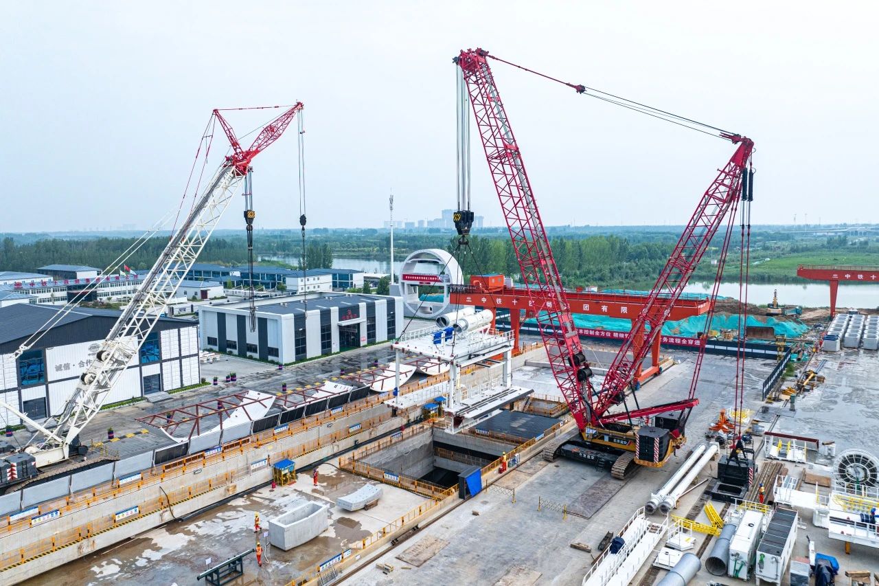 工程所采用的“山河號(hào)”盾構(gòu)機(jī),是世界在建最大直徑泥水平衡盾構(gòu)機(jī),最大開(kāi)挖直徑17.5米,總長(zhǎng)163米、重達(dá)5200噸、裝機(jī)總功率12580千瓦,裝配各類(lèi)刀具306把,其中57把可實(shí)現(xiàn)滾刀齒刀互換,刀盤(pán)開(kāi)口率53%,最大限度滿(mǎn)足掘進(jìn)所面對(duì)的復(fù)雜地層,盾構(gòu)機(jī)總裝達(dá)到世界先進(jìn)水平。