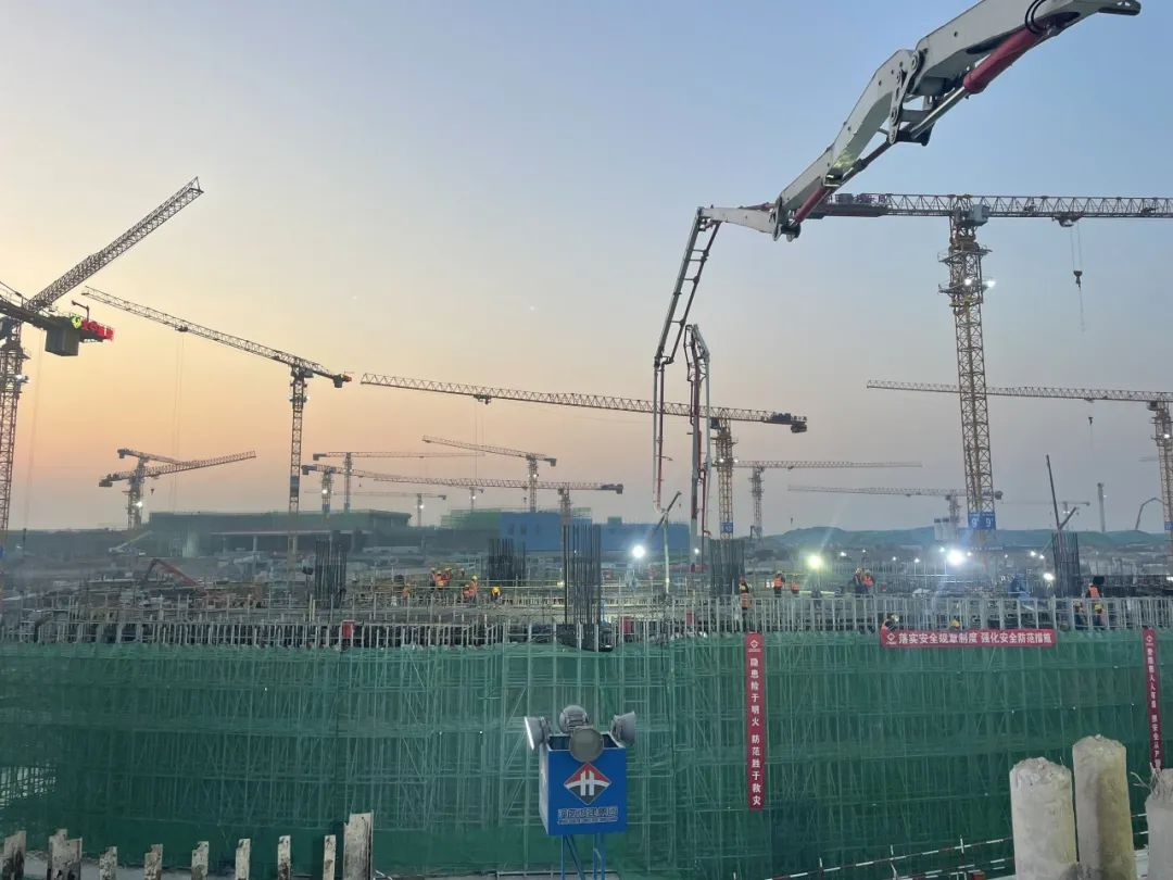 濟南遙墻機場二期改擴建工程T2航站樓項目8號下穿通道首段主體1400立方米混凝土澆筑完成,標志著項目建設取得階段性勝利。由濟南國際機場建設有限公司投資建設的濟南遙墻機場二期改擴建工程8號下穿通道位于T1航站樓西北側,南北向橫穿正在建設的濟南遙墻機場T2航站樓,連接南、北工作區(qū),可以實現(xiàn)工作區(qū)車輛的南北街接,全長245米,采用雙倉分建和雙倉共建鋼筋混凝土結構,雙倉分建段尺寸標準段內徑凈寬8.25米,凈高約7.2~7.5米,底板厚度1.2米,頂板厚度0.7米,中墻厚0.8米,側墻厚1.0米。8-1通道主體涉及高支模超危大工程,墻體厚、高度寬度均漸變、圓弧線性,橫穿8條斜交梁,多處異型柱,與中建三局八局預留預埋交叉施工,結構復雜,施工難度大。自項目啟動以來,項目部秉持精益求精的態(tài)度,攻堅克難,順利完成8號下穿通道首段主體澆筑節(jié)點目標。