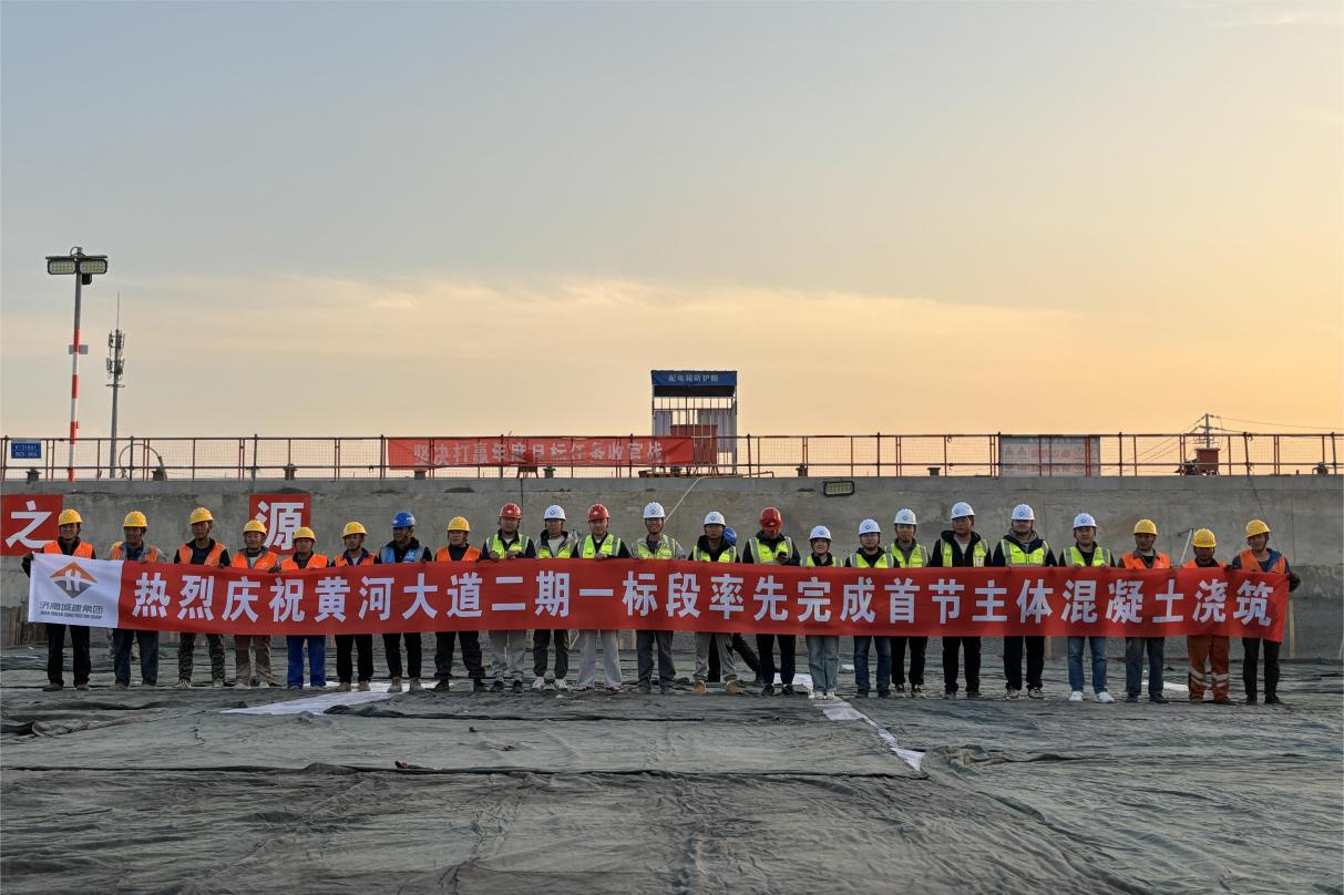 濟南黃河大道二期工程施工一標段率先完成首節(jié)主體混凝土澆筑。黃河大道二期工程首節(jié)主體長35米,寬30.3米,高9.2米,由底板、側墻、頂板三部分組成,所用材料主要為C40補償收縮混凝土,抗?jié)B等級P10。為了保障主體混凝土澆筑質量與進度,項目部周密策劃組織施工,積極落實澆筑技術質量安全交底,統(tǒng)籌調配人材機配置與進場,鉚足干勁、團結協(xié)作,順利完成首節(jié)主體混凝土澆筑。作為濟南新舊動能轉換起步區(qū)的重點項目,首節(jié)主體澆筑是黃河大道二期工程建設的又一重要工程節(jié)點。
