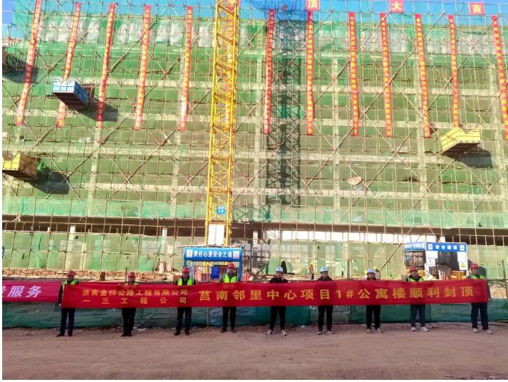 鄰里中心項目是臨沂市觀摩項目,涉及鋼結(jié)構(gòu)、鋼筋混凝土結(jié)構(gòu)、幕墻工程、裝飾裝修、安裝工程、電梯工程、ALC墻板工程等多個專業(yè)性較強的領(lǐng)域,工期緊、任務(wù)重,給項目團隊帶來了很大的挑戰(zhàn)。項目部周密策劃組織施工,積極落實質(zhì)量安全交底,統(tǒng)籌調(diào)配人材機配置與進(jìn)場,鉚足干勁、團結(jié)協(xié)作,每天召開例會各個擊破現(xiàn)場問題,不斷提高施工效率、質(zhì)量。12月15日,項目公寓樓順利封頂,標(biāo)志著項目建設(shè)取得階段性勝利。