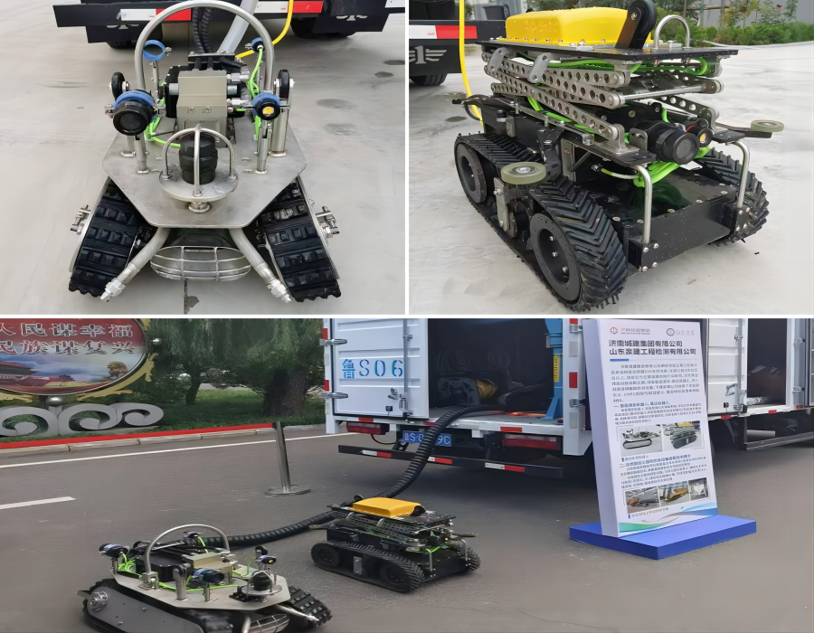 城建集團公司創(chuàng)新研發(fā)的管道清淤機器人、管道雷達檢測機器人兩款智能建造高新裝備均達到IP68等級,可在管道滿水情況下作業(yè)。其中,管道清淤機器人對管道內(nèi)淤堵采用聲吶定位,前端搭載高壓噴頭及吸污口,實現(xiàn)DN800及以上管徑管道的快速高效清淤;管道雷達檢測機器人搭載高性能防水雷達天線,并設有升降裝置,可根據(jù)不同管徑,靈活調(diào)整雷達高度,實現(xiàn)DN800及以上管徑管道內(nèi)表面及壁后缺陷的精準檢測。