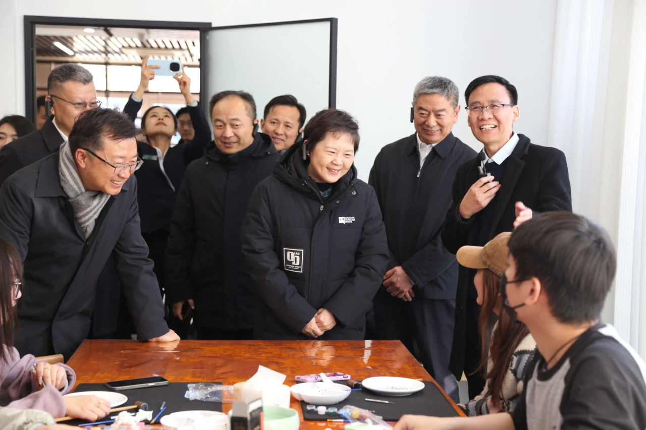 揭牌儀式結束后,謝力一行視察了槐蔭山東手造(非遺)展示體驗中心、潘魯生民藝館、山東水彩畫院以及帷幕開啦文藝蠟像館,一起感受了濟南老城底蘊和新潮文化。在蠟像館身臨其境地感受了名人魅力風采、傳統(tǒng)文化的視覺盛宴,參與了多元化場景互動,體驗到文化和科技融合所產(chǎn)生的效能已成為傳承文化蓬勃發(fā)展新形態(tài),使文化煥發(fā)出新的生機。