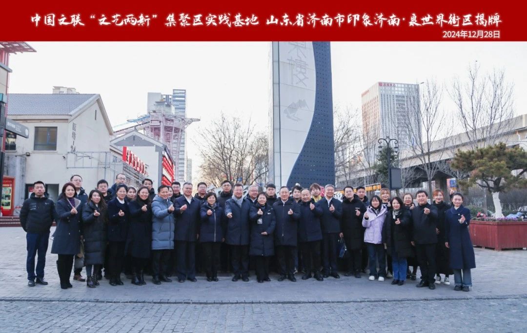12月28日,中國文聯(lián)“文藝兩新”集聚區(qū)實踐基地揭牌儀式暨濟南市“文藝兩新”工作視察活動在印象濟南·泉世界舉行。本次活動由中國文學藝術界聯(lián)合會國內(nèi)聯(lián)絡部指導,山東省文學藝術界聯(lián)合會、濟南市文學藝術界聯(lián)合會、中共濟南市槐蔭區(qū)委主辦,中共濟南市槐蔭區(qū)委宣傳部、濟南市槐蔭區(qū)文聯(lián)、印象濟南商圈文聯(lián)承辦。