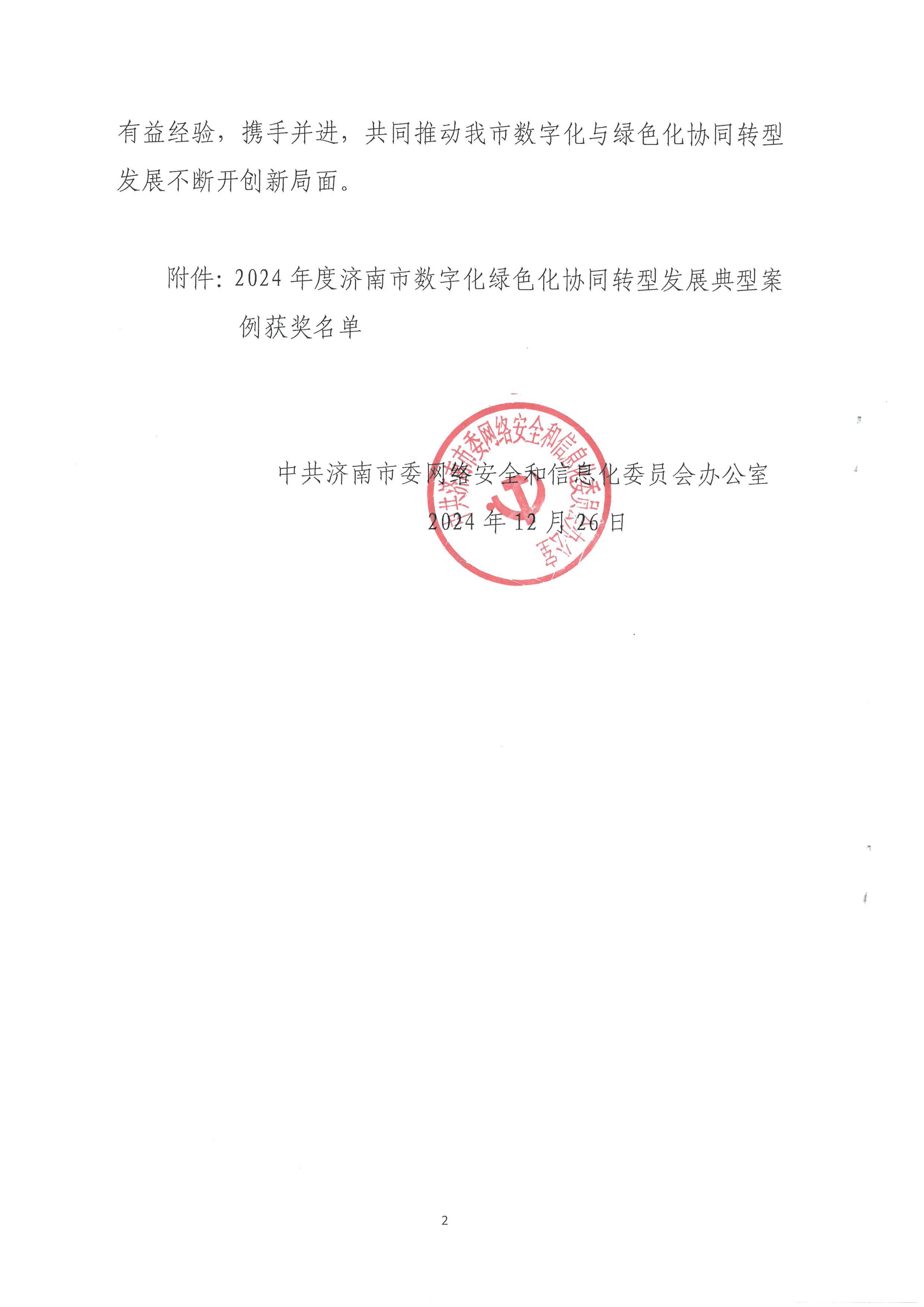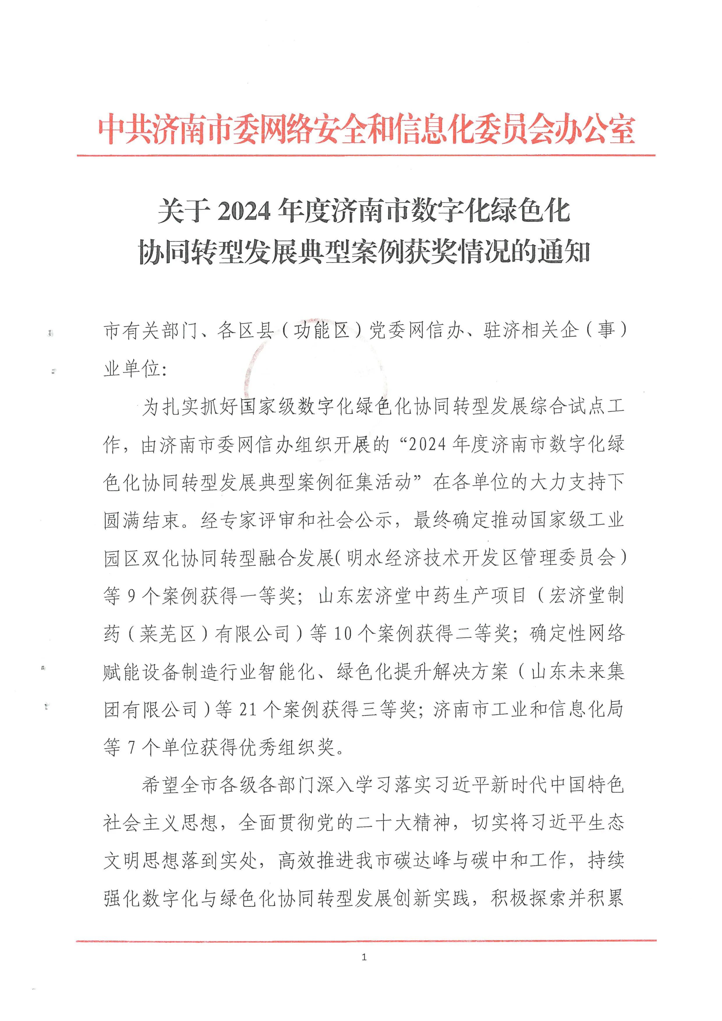 近日,濟(jì)南市委網(wǎng)信辦公布了《2024年度濟(jì)南市數(shù)字化綠色化協(xié)同轉(zhuǎn)型發(fā)展典型案例獲獎(jiǎng)情況的通知》。經(jīng)過嚴(yán)格的考察、評(píng)審與公示,建設(shè)集團(tuán)所屬濟(jì)南城市建設(shè)集團(tuán)投資有限公司提交的“綠色金融協(xié)同賦能平臺(tái)”案例在眾多參評(píng)項(xiàng)目中脫穎而出,榮獲一等獎(jiǎng)。