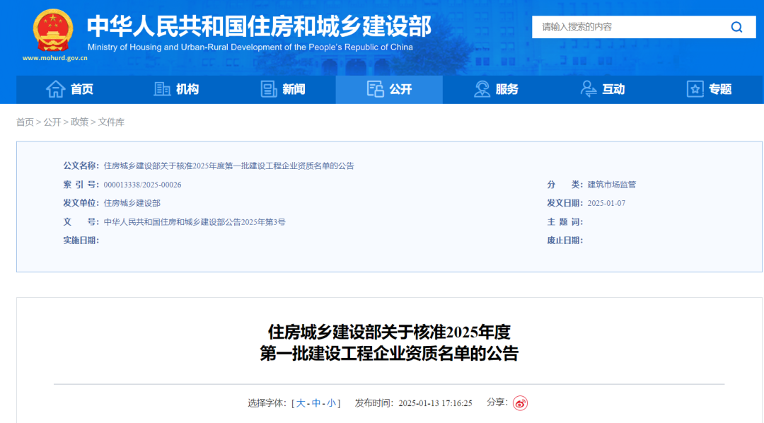 1月13日,住房和城鄉(xiāng)建設(shè)部發(fā)布《住房城鄉(xiāng)建設(shè)部關(guān)于核準(zhǔn)2025年度第一批建設(shè)工程企業(yè)資質(zhì)名單的公告》,濟(jì)南城市建設(shè)集團(tuán)所屬濟(jì)南金曰公路工程有限公司獲評(píng)公路工程施工總承包特級(jí)資質(zhì)和工程設(shè)計(jì)公路行業(yè)甲級(jí)資質(zhì)。